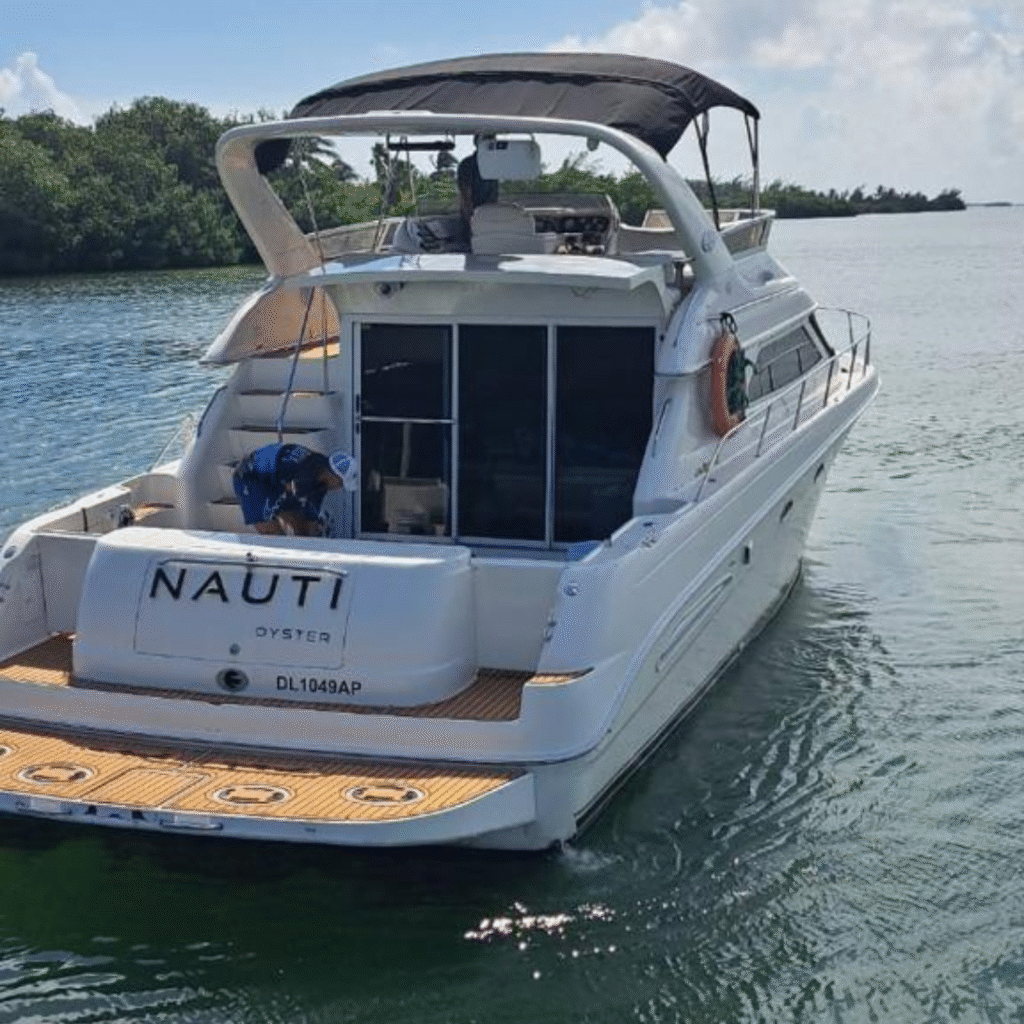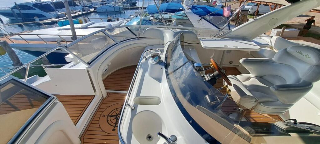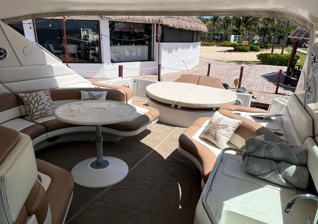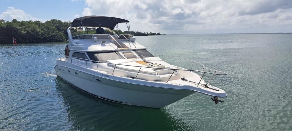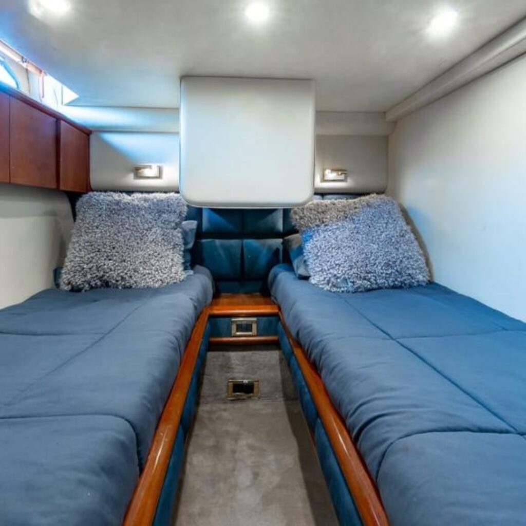 Sundancer flybridge model 2010 with capacity for 15 passengers and 5 additional passengers plus crew.