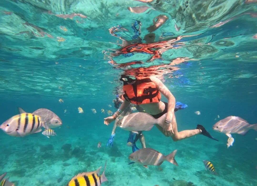 Marine park wristbands, Federal taxes, Activity equipment, Snorkeling, Marine park access, Reserve access, Complimentary onboard beverages, Regional-style fish served with rice, spaghetti, salad, avocado, chicken, seasonal fruit, tortilla chips, mild salsa, 1 hour on Isla Mujeres